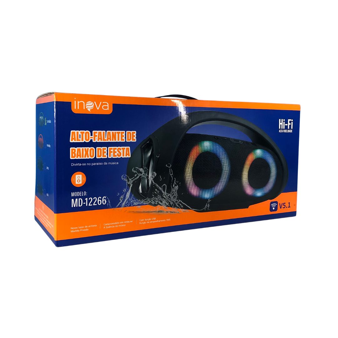 Caixa de Som Portátil Bluetooth Inova RAD-12266 - Potência e Versatilidade em um Design Compacto com RGB