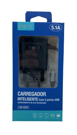 CARREGADOR INTELIGENTE INOVA V8 5.1A 3 USB CAR-9002
