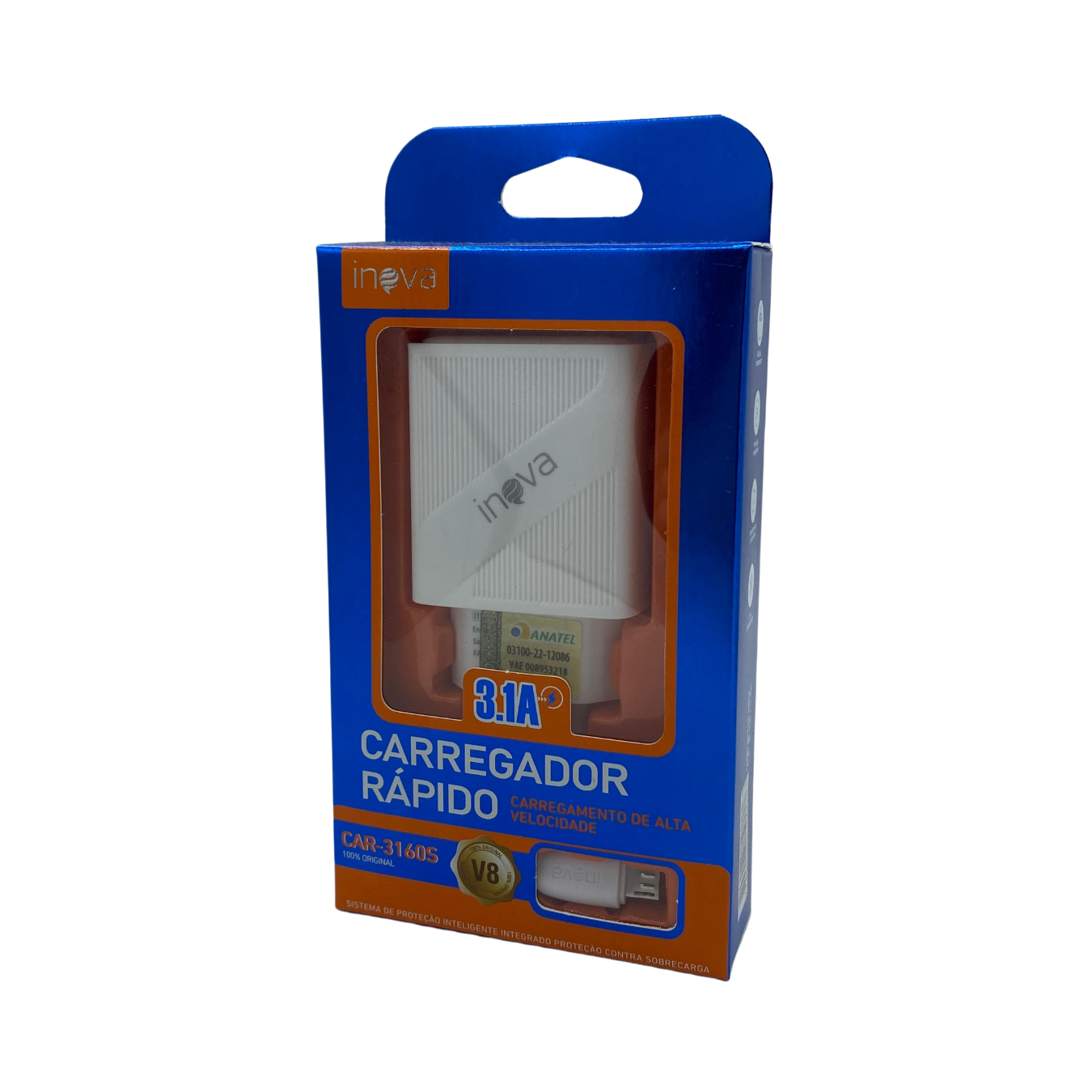 CARREGADOR RAPIDO 3.1A COM 2 ENTRADAS USB COM CABO V8 MICRO USB INOVA CAR-3160S@