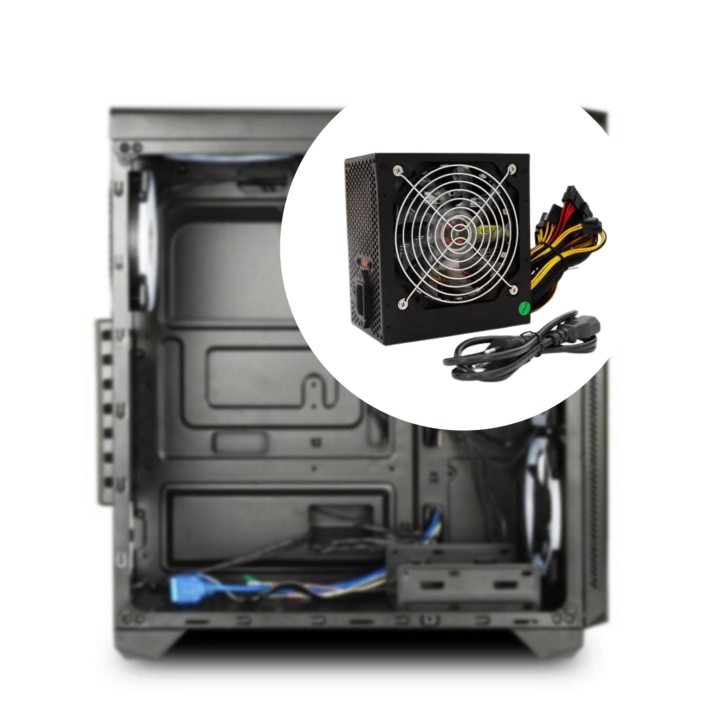 Fonte para computador com potencia de 500w e barramento de +12V; Potencia: 550 Watt; Tipo: ATX; Voltagem entrada: 115V/230V; Frequência: 50 – 60Hz; Ventilador: 12 cm; Proteção interna contra curto-circuito; Conectores: 1x 20+4 Pin, 1x 4+4 Pin (8 Pin), 1x 6+2 Pin PCI-e , 2x SATA, 3x IDE Power.