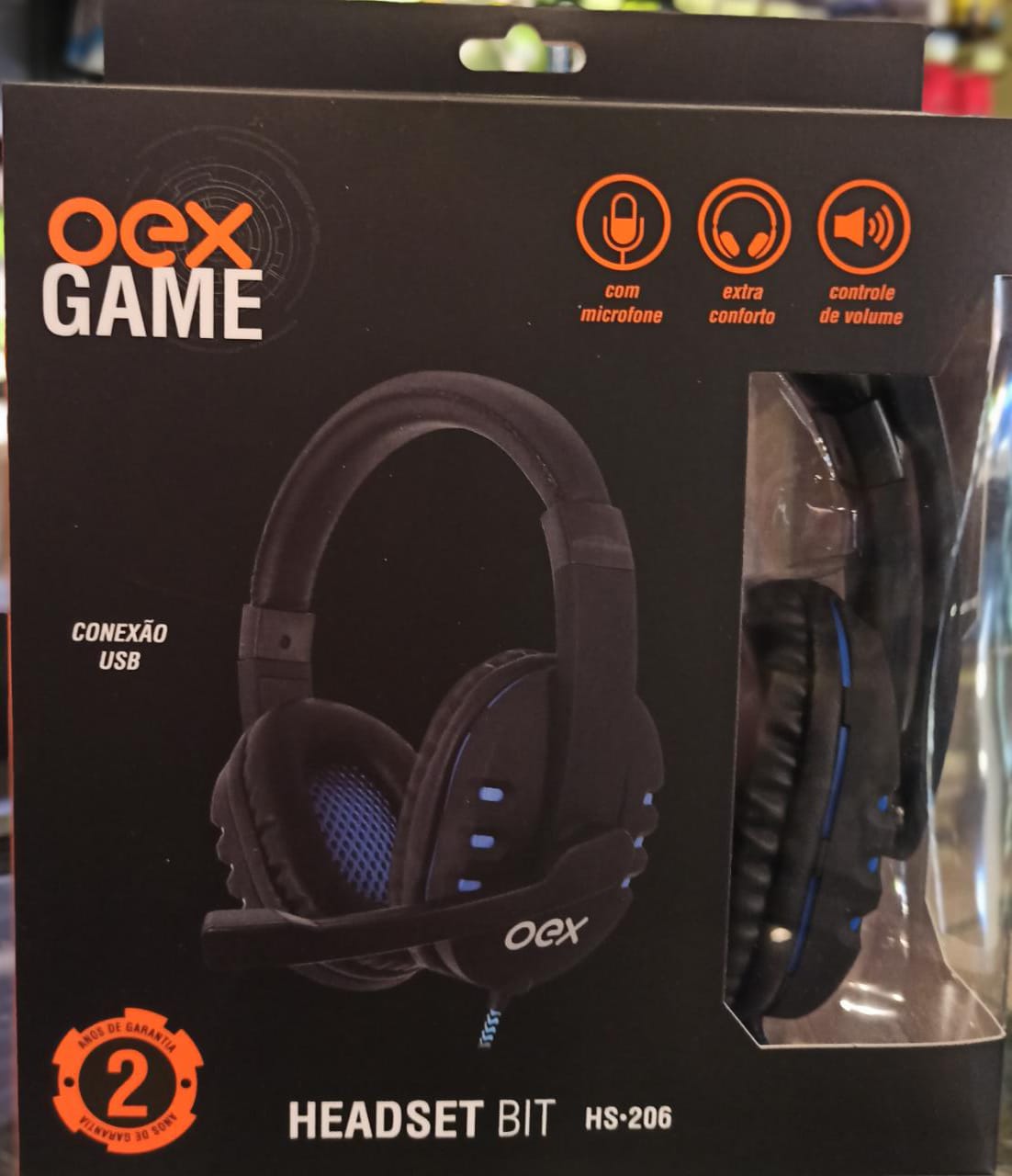 HEADSET BIT USB 2M CONTROLE NO CABO OEX GAME HS206 PRETO