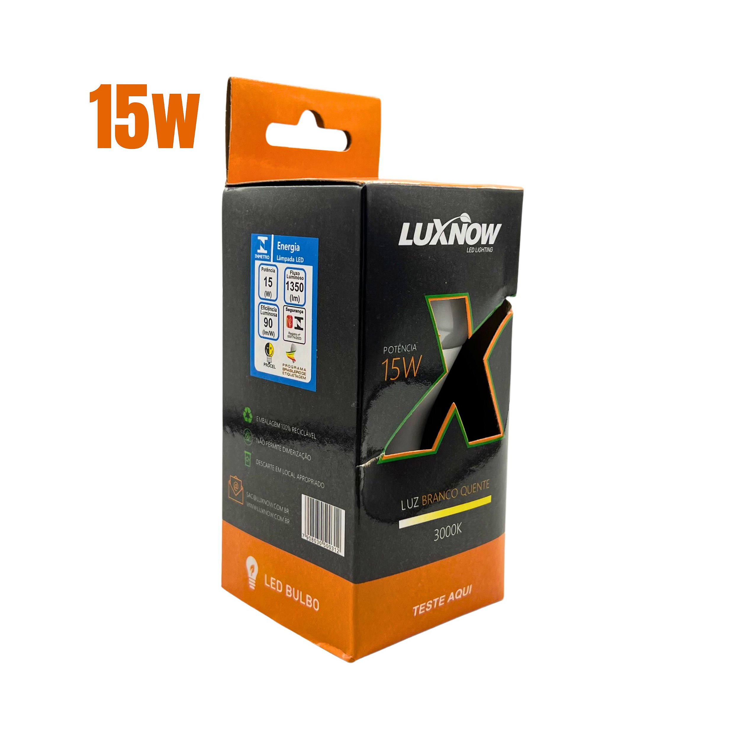 A Lâmpada LED Luznow oferece uma solução confiável e econômica de iluminação para seus clientes. Com temperatura de cor branca quente de 3000K, proporciona um ambiente acolhedor e agradável em diversos espaços comerciais e residenciais.