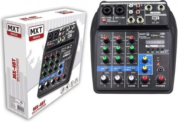 MESA DE SOM MX-4BT COM 4 CANAIS, EFEITO E PHANTOM POWER