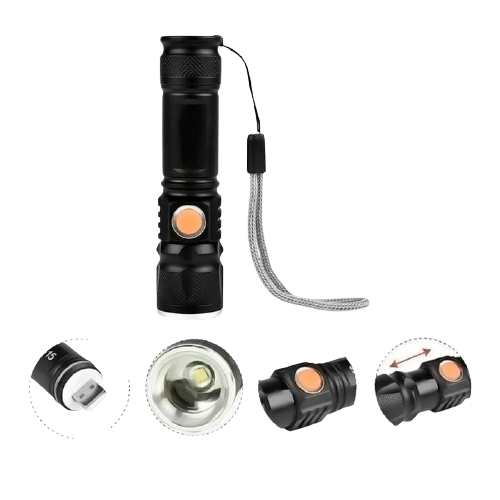 Modelo Mini Lanterna - USB Recarregável via entrada USB