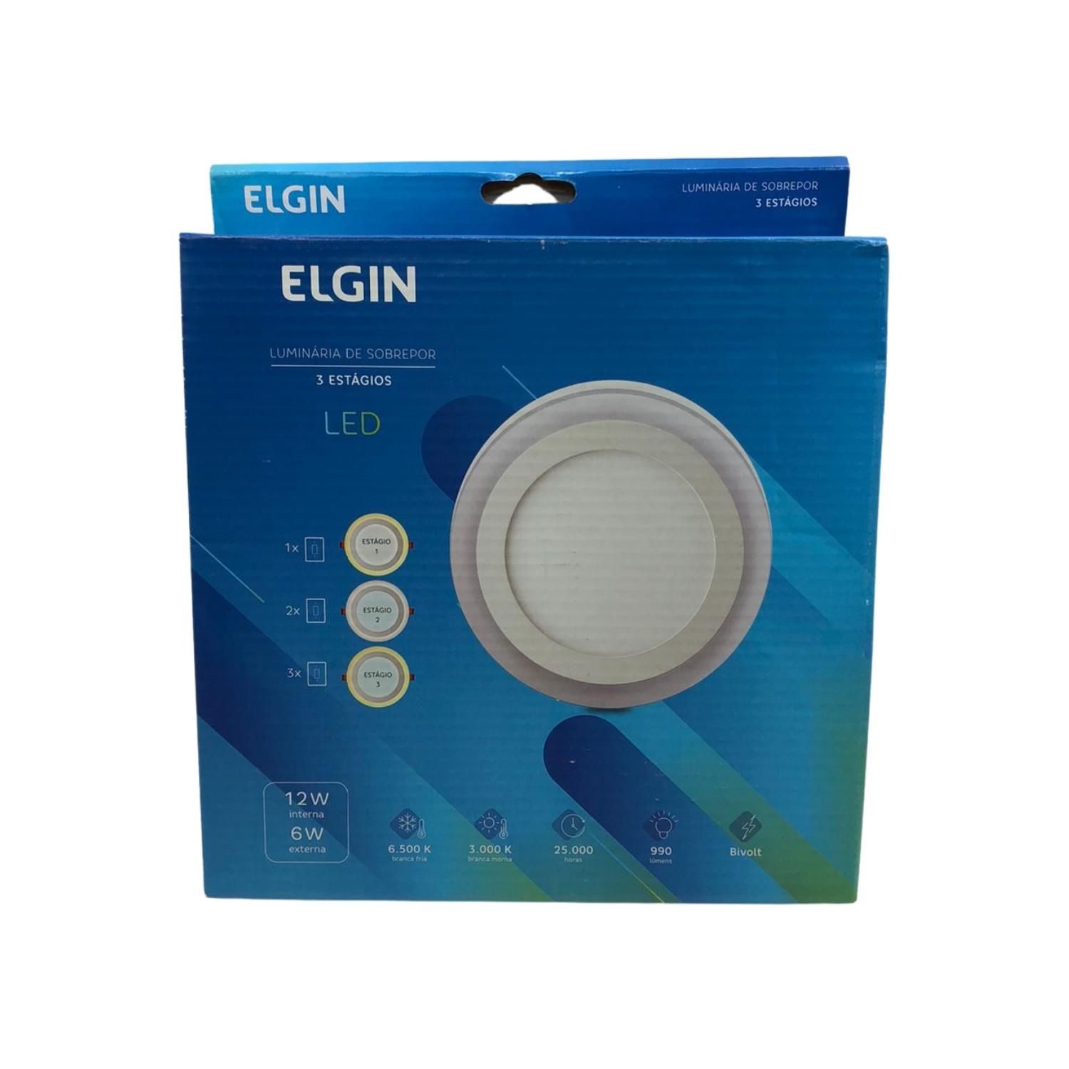 Luminária LED Redonda de Sobrepor com 3 Estágios 12w+6w 6500k+3000k 48D124WSRBM0 Elgin A luminária LED de sobrepor da Elgin produz efeitos decorativos em três intensidades de luz por meio do botão interruptor. Possui vida útil de 25 mil horas e seu formato redondo incorporado em um design decorativo cairá bem em qualquer ambiente a qual seja aplicada. Apertando o botão 1 vez, o aro acende para proporcionar uma luminosidade amena, apertando 2 vezes, o painel interno de luz branca fria acende, e na terceira vez, o aro e o painel se acendem pra proporcionar intensidade máxima. A luminária ainda acompanha driver e já vem pronta para ser instalada!