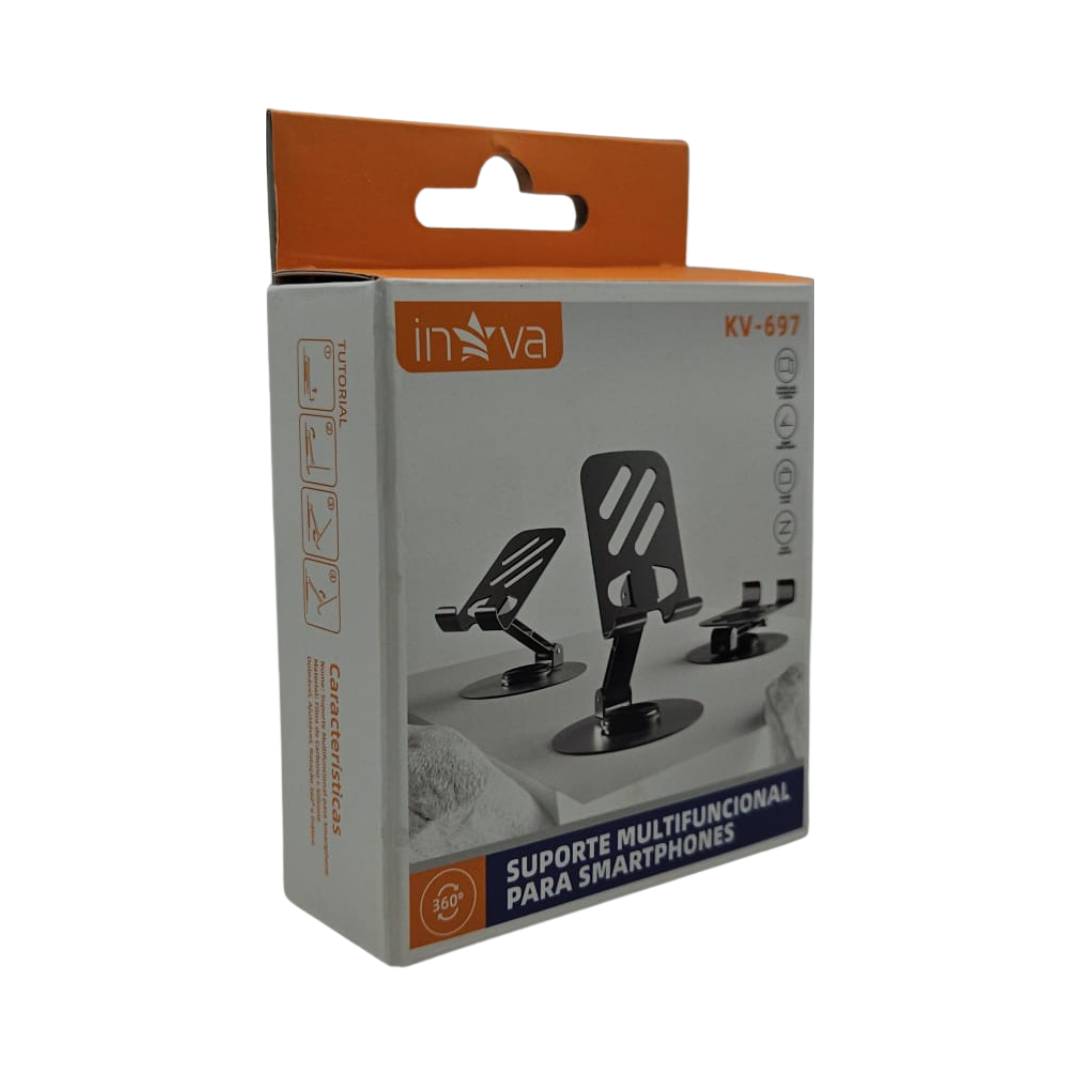 O Suporte de Mesa KV-697 é uma opção simples e prática para manter o seu celular ou tablet apoiado enquanto você trabalha, assiste vídeos ou realiza videochamadas. Com design compacto, ele é fácil de transportar e se adapta bem a mesas, bancadas e outros ambientes.